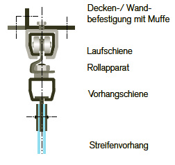 verschiebbarer Streifen- vorhang ist ideal für Transporte von leichtem und empfindlichem Fördergut oder um Verschleiß durch extreme Beanspruchung der Streifen zu verhindern. Mit leichtlaufenden Rollenauf-